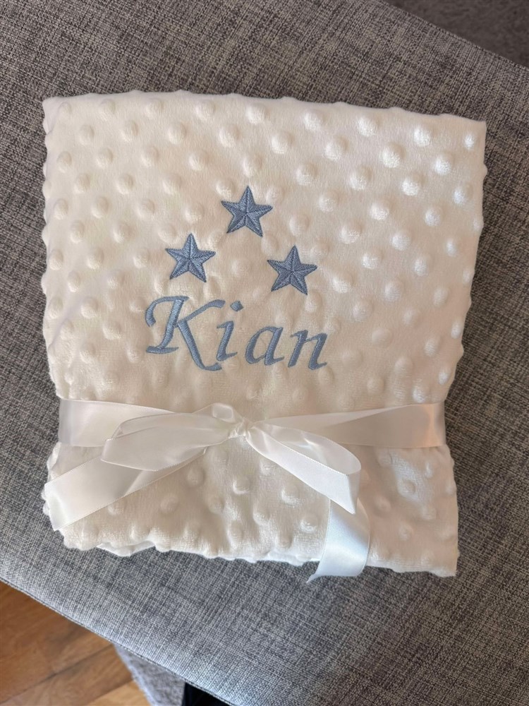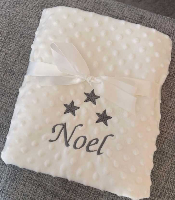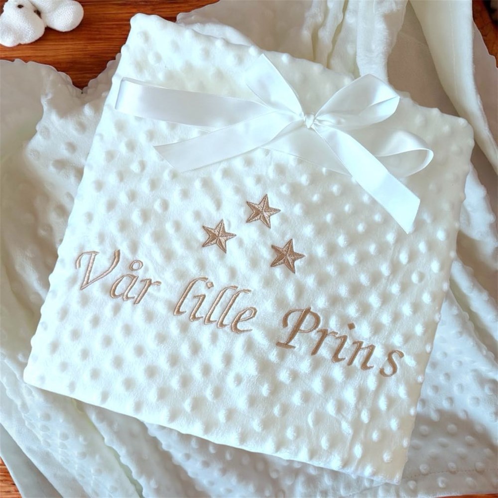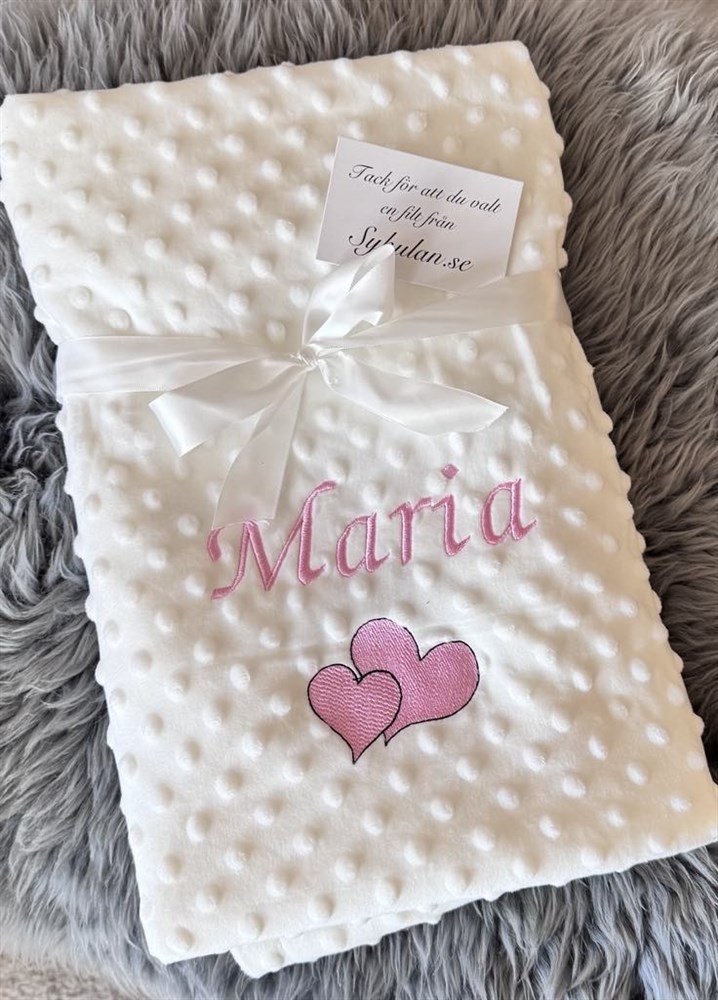 Filt med stjärnor eller hjärtan och ett namn